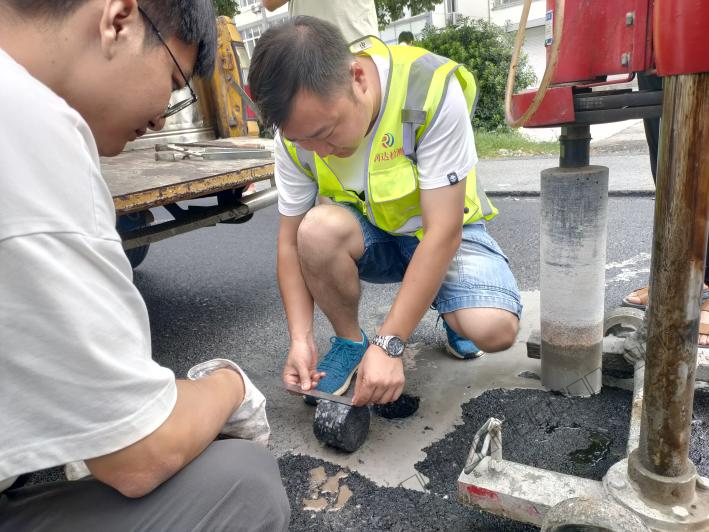 为做好2023年扬州市普通国省道养护大修工程的质量检测工作,8月1日,润达公司组队前往G345启那线仪征路段开展取芯试验的检测工作。