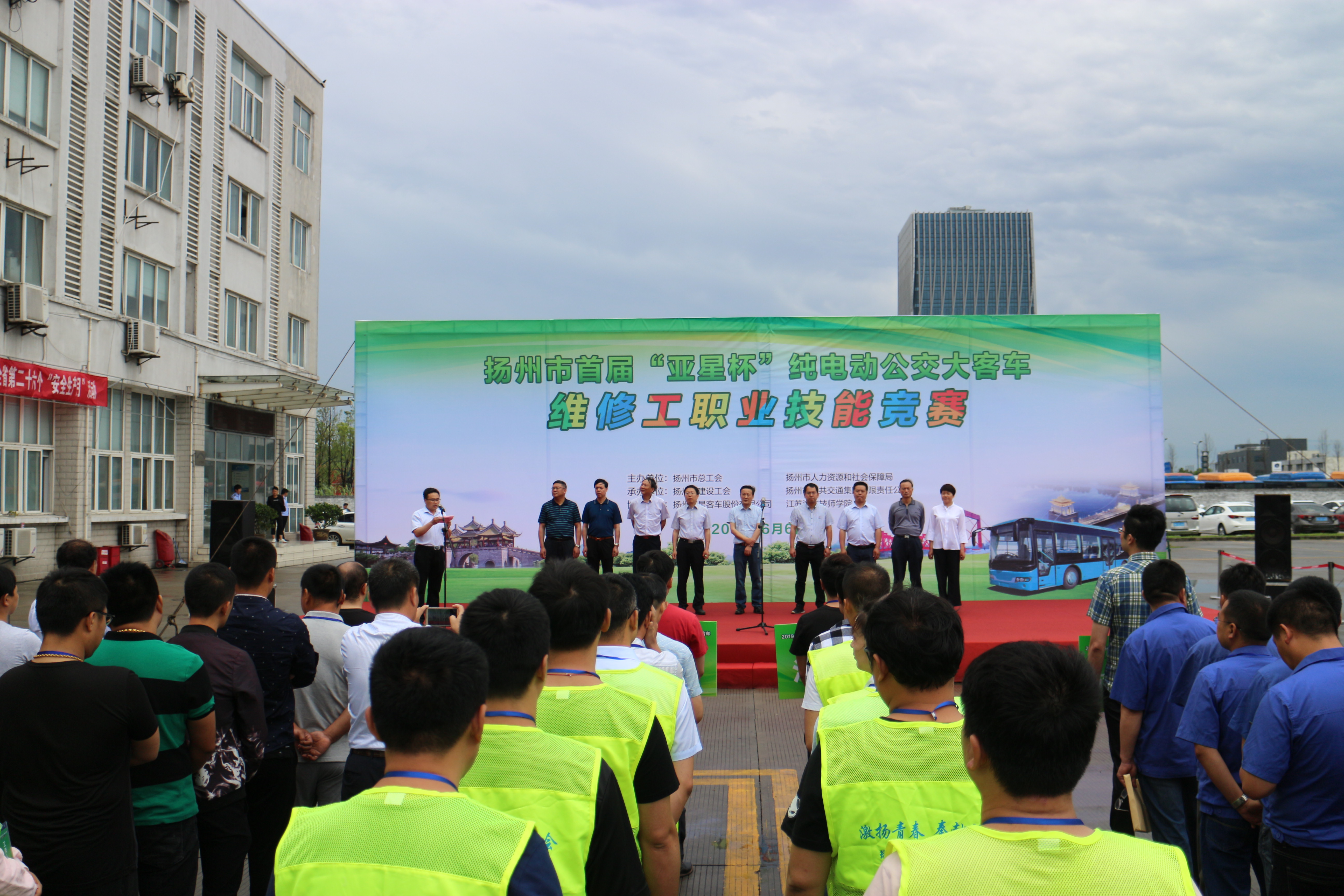 6月6日,扬州市首届“亚星杯”纯电动公交大客车维修工职业技能竞赛在扬州公交集团北站修理分厂圆满完赛。本次比赛是扬州市首次开展的市级新能源大客车维修大赛,市总工会副主席朱明、市人力资源和社会保障局副局长李宏平、市国资委副调研员王宁生、公交集团党委书记、董事长、总经理龚宇峰等领导出席开幕式。