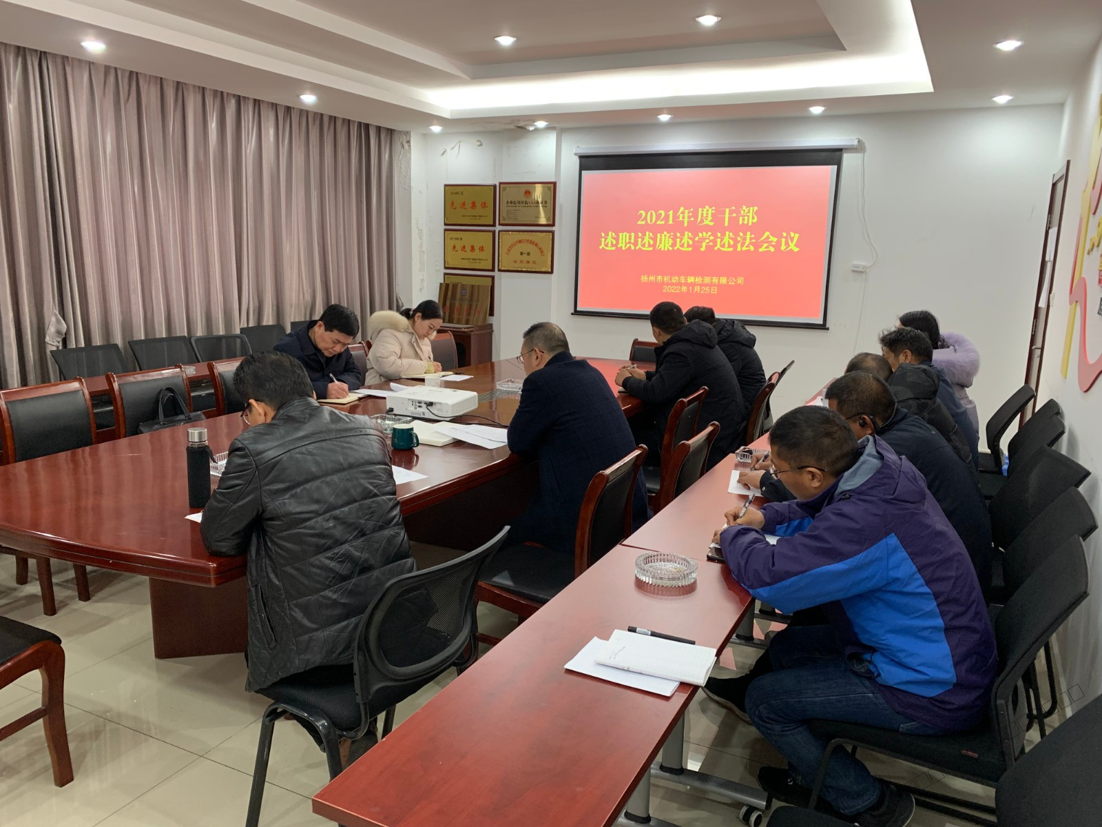 1月25日下午,检测公司召开2021年度领导班子述职述廉述学述法测评会。市交通产业集团副总经理吴忠俊带队莅会指导,检测公司全体领导班子成员、委派财务经理、中层管理人员以及职工代表10人参加会议。